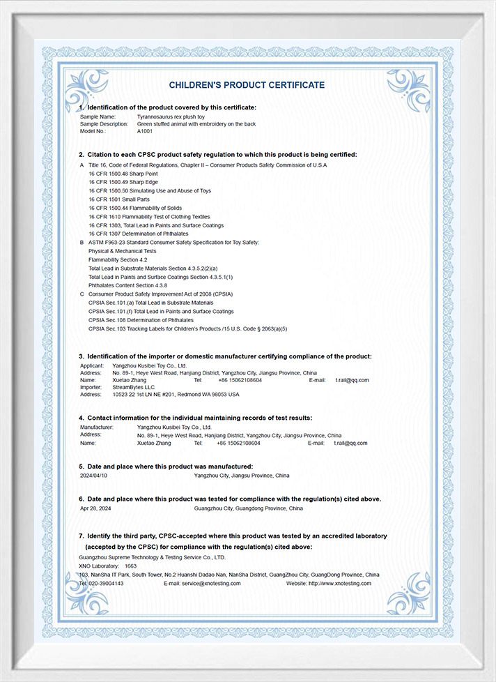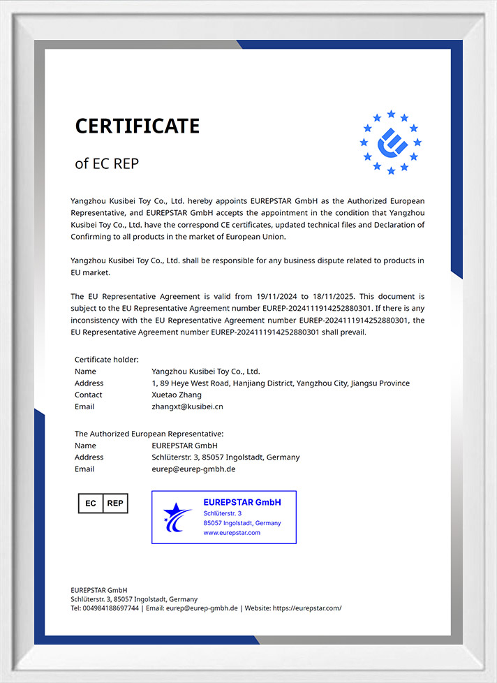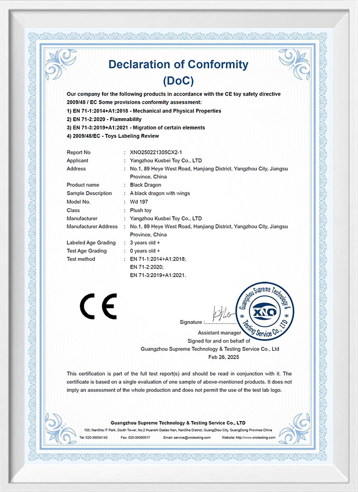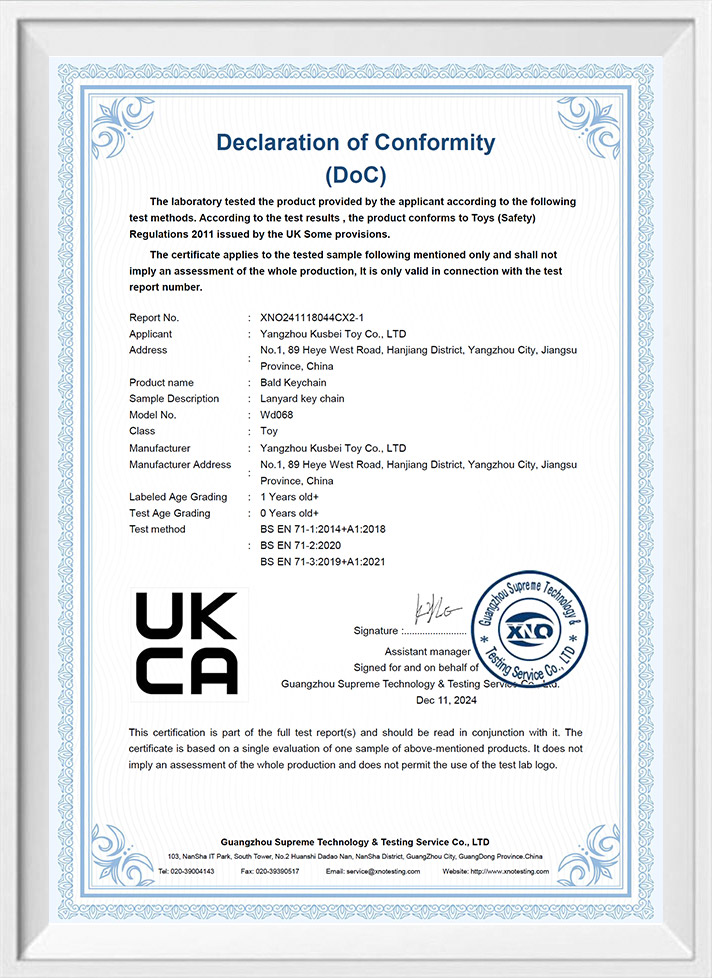 Materialerne og produktionsprocesserne i vores brugerdefinerede legetøjsløsninger opfylder kvalitetsstandarder: UKCA EN71, CE EN71, CPC, hvilket sikrer, at de er helt sikre.